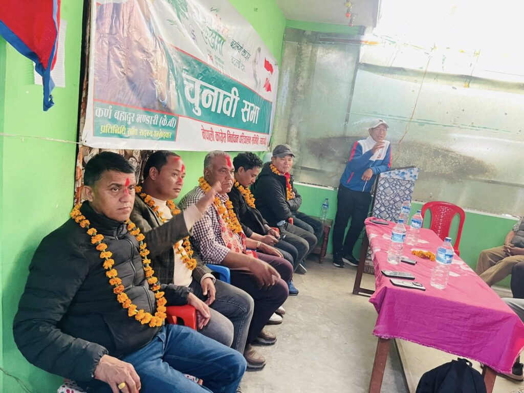 सोही अवसरमा निवर्तमान राज्यमन्त्री तथा नेपाली कांग्रेस म्याग्दीका सभापति खमबहादुर गर्बुजाले आफूले छोटो समयमा जिल्लाका लागि धेरै काम गरेको,बजेटदेखि लिएर योजनाहरुको निरन्तरता र जिल्लामा देखिएका समस्या समाधानको लागि प्रयास गर्दागर्दै देशमा उत्पन्न समस्याका कारण ती सबै प्रयासहरु अधुरा रहेका बताउनुभयो । उहाँले आफ्नो कार्यकालमा अधुरा रहेका कामहरु पुरा गर्नुका साथै जिल्लामा देखिने गरी विकास निर्माणका लागि बजेट र कानुन निर्माणमा कांग्रेसका उम्मेदवार कर्णबहादुर भण्डारी (के.वि) अझै योग्य भएकाले उहाँलाई भोट दिई विजयी बनाउन आग्रह गर्नुभयो । साथै मालिकाो दिच्याम र गगनपानीका बस्तीहरुमा घरदैलो समेत गरिएको गियो ।